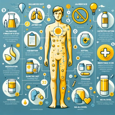 - 간질환에 의한 황달: 바이러스성 간염은 항바이러스 약물로, 알코올 또는 약물 유발 간염은 원인 제거와 간 회복에 집중합니다. 간경변의 경우, 간 기능 지원 및 건강한 생활 습관이 중요하며, 심한 경우 간 이식 고려.
