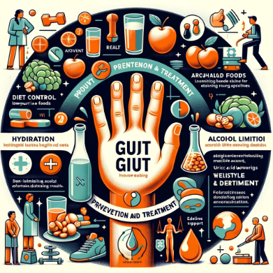 통풍 예방은 주로 생활 습관의 변화와 식단 조절을 통해 요산 수치를 정상 범위 내로 유지하는 것에 중점을 둡니다.
