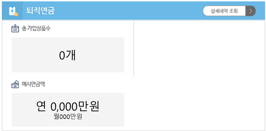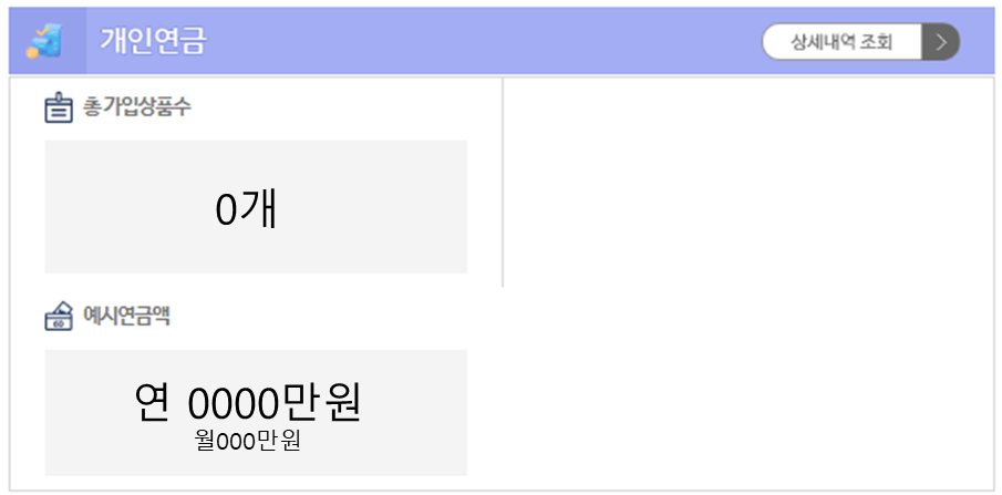 총 가입상품수, 예시연금액 (연, 월) 확인이 가능합니다
