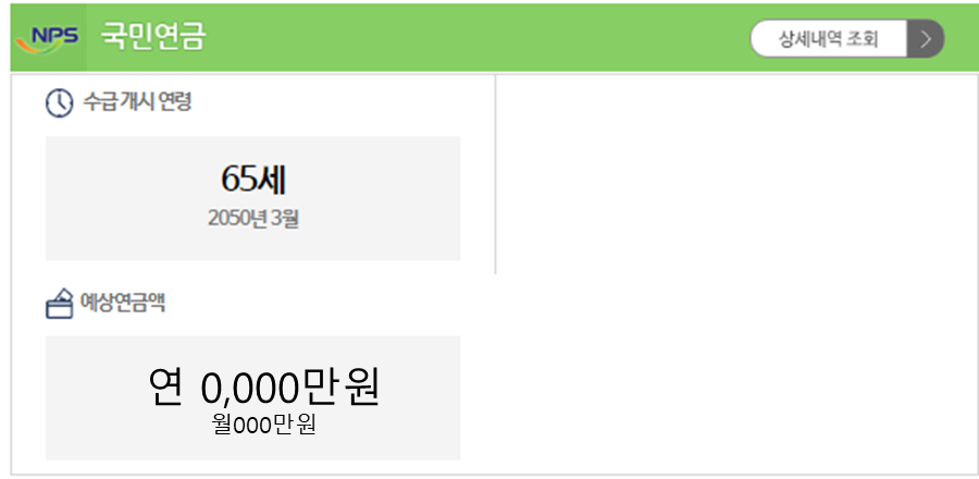 수령 개시 연령, 예상연금액(연, 월) 확인이 가능합니다