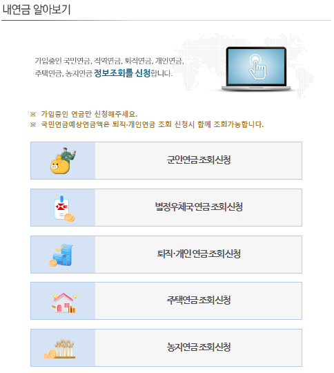 아래에 해당하는 연금을 클릭하시면 됩니다